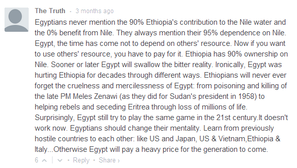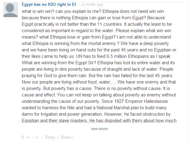 2. How do Ethiopians think of Egypt’s political stance and Egyptians ??