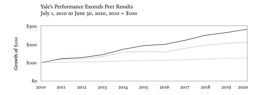 من الأخبار المهمة اللي شدت انتباهي مؤخرا حدوث نمو خرافي للفاند التابع لجامعة يال بنسبة ٤٠٪ من ٣١ مليار إلى قيمة أصول تتجاوز ال ٤٢ مليار.