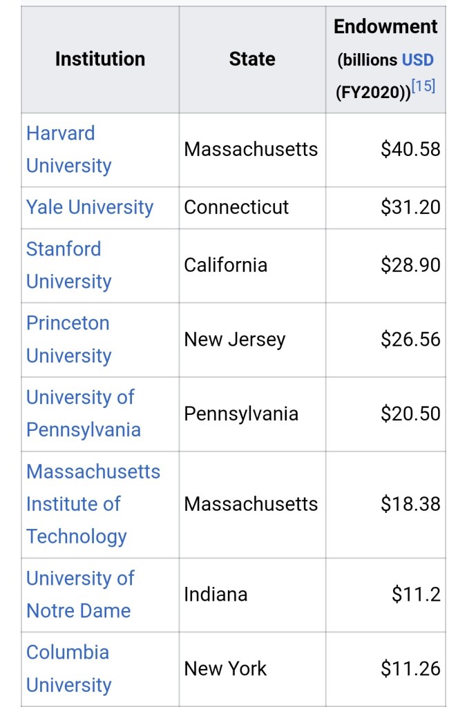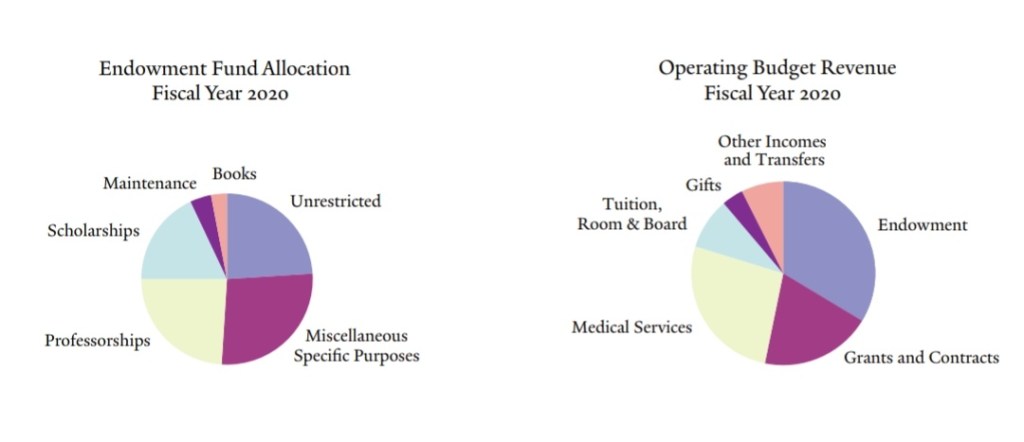 معظم الجامعات الكبرى في الولايات المتحدة و العالم بدأت عن طريق وقف خيري، و الأوقاف دي قيمة أصولها تصل لعشرات المليارات و تدر عائدات سنوية ضخمة بتمثل مصدر أساسي من مصادر الدخل للجامعة اللي بتقدر من خلالها تمول مرتبات الأساتذة و منح الطلبة و الأبحاث العلمية في الجامعة.