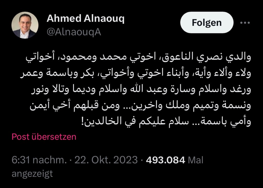 My father Nasri Alnaouq, My brothers Mohamed and Mahmoud, My sisters Walaa , Aalaa and Aya, My nephews and nieces Bakr, Basma, Amr, Raghda, Islam, Sara, Abdallah, Islam, Dima, Tala, Nour, Nesma, Tamim, Malak and others, and before them my brother Ayman and my mother Basma … may you all rest in peace !